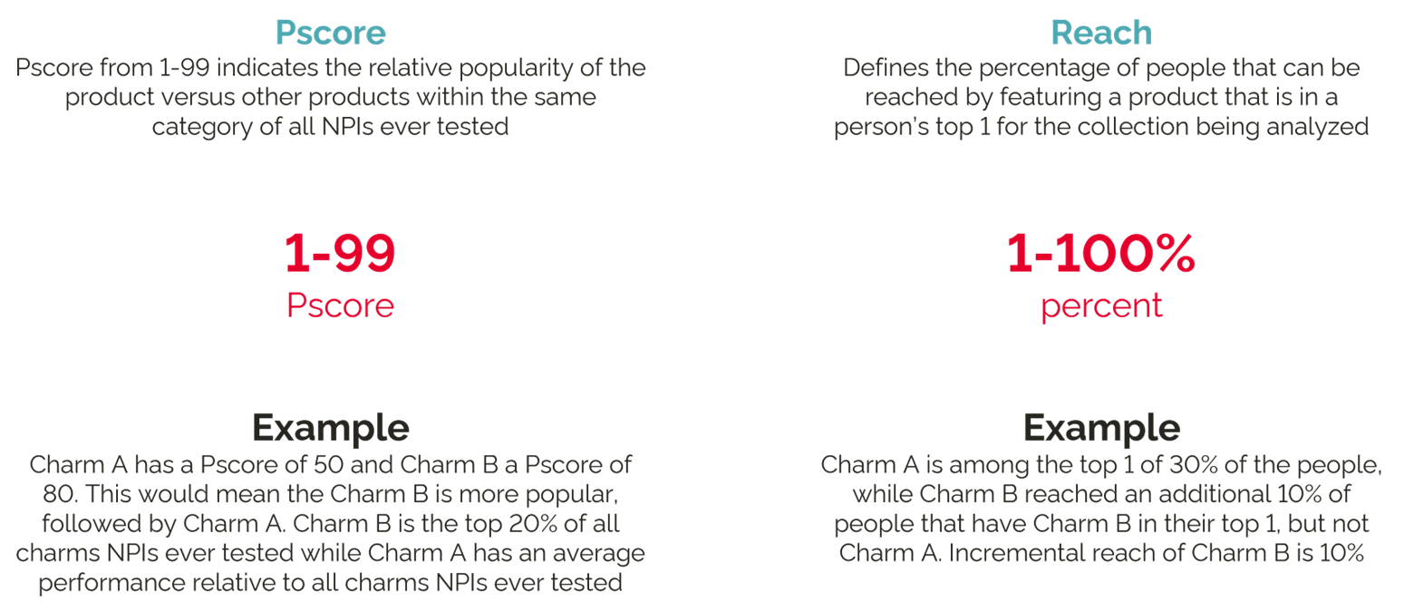 Pscore from 1-99 that indicates the relative popularity of the product versus other products within the same category of all NPIs ever tested. The higher the number, the better performing the NPI is relative to other products ever tested. Here are some things to note: